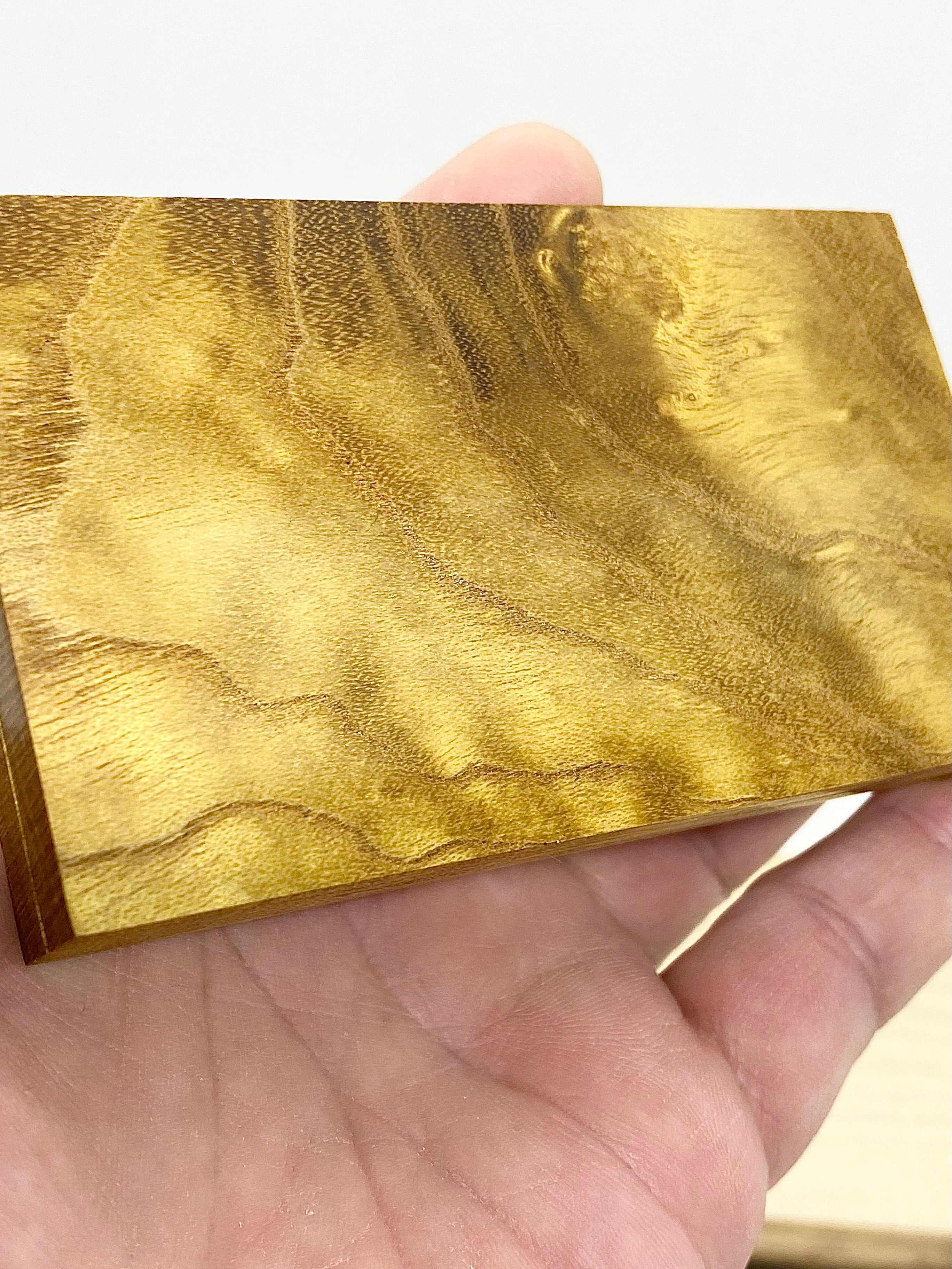 見る角度によってギラッギラ、ユラユラと綺麗な杢が入った上材です。