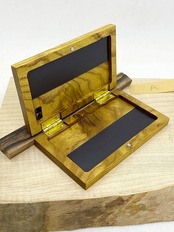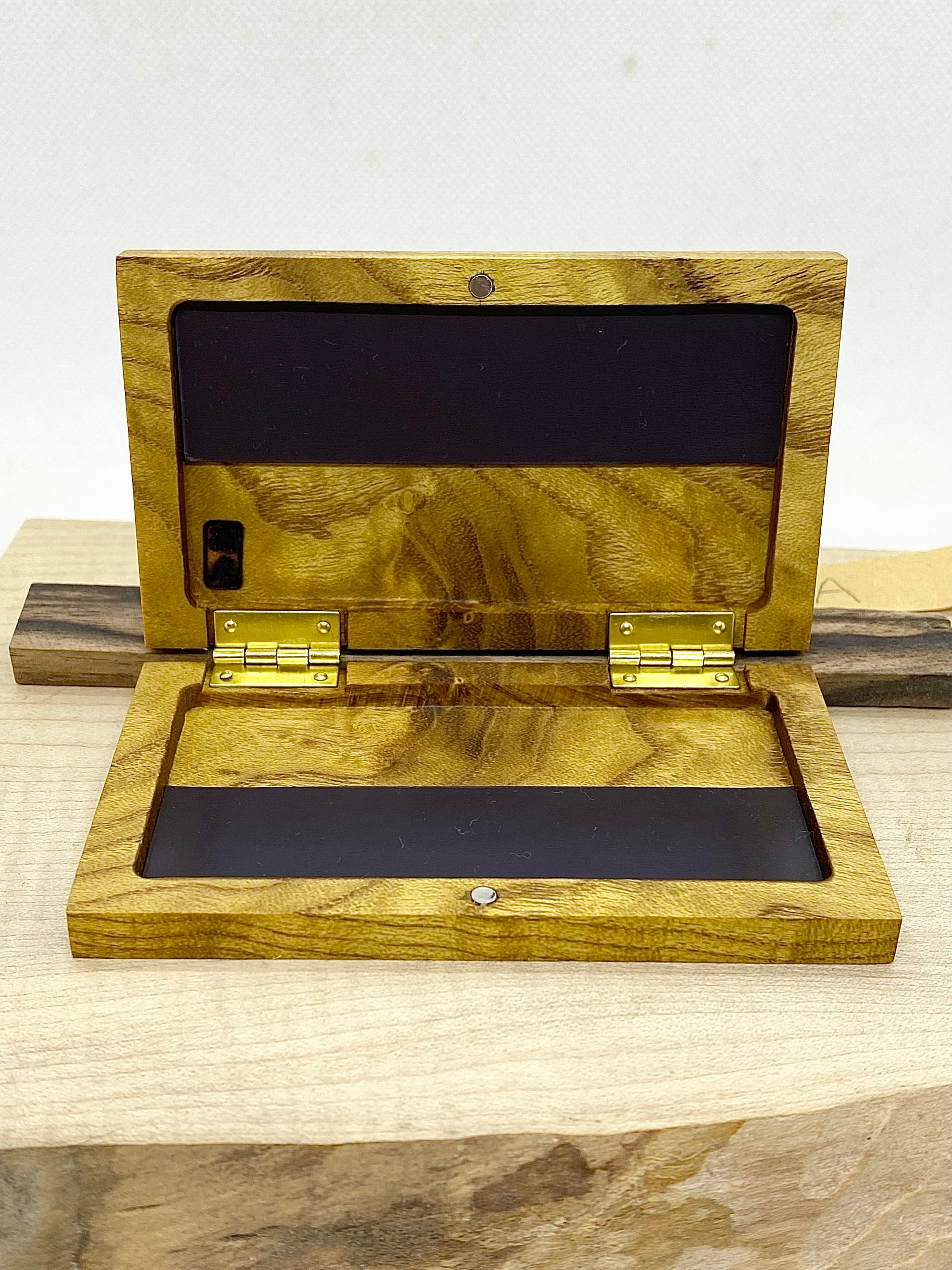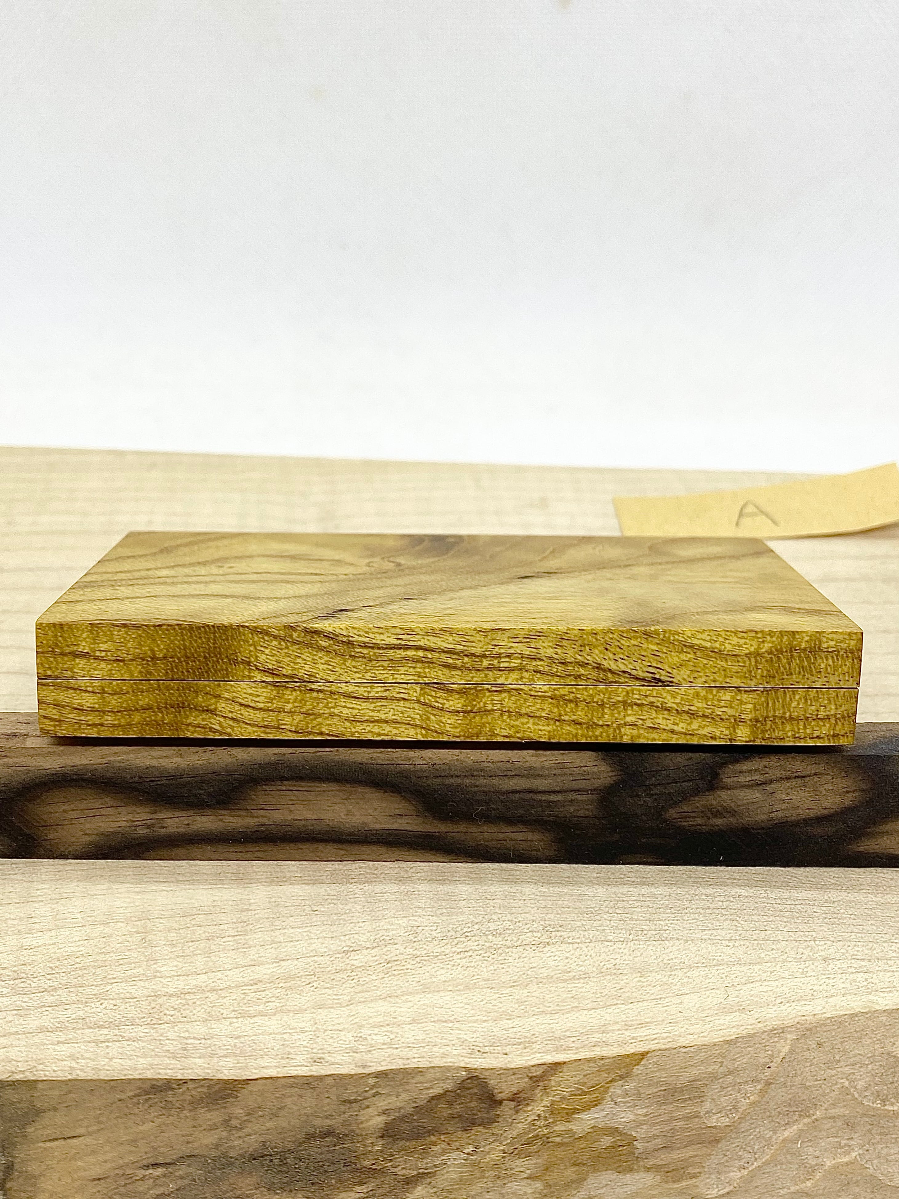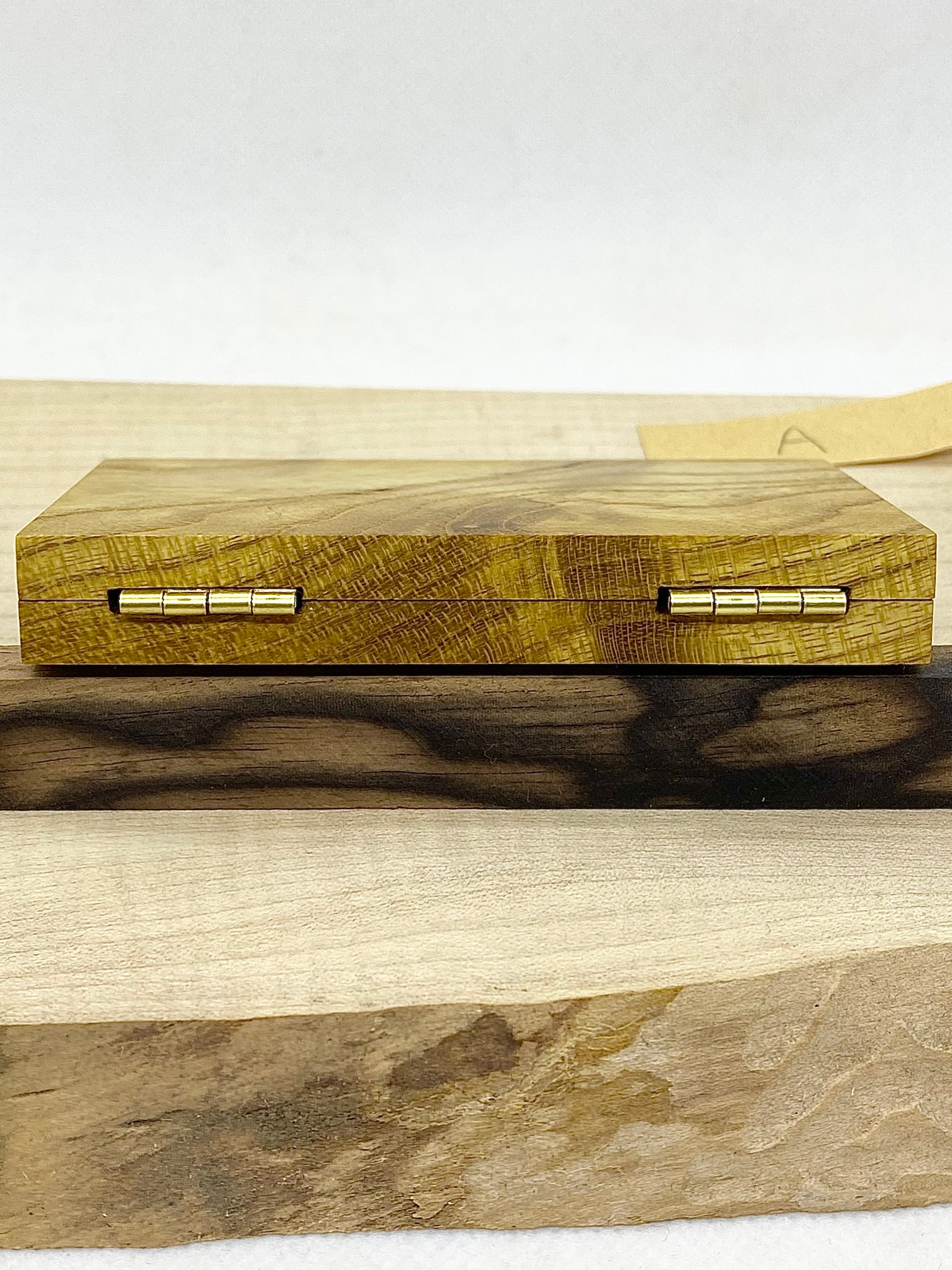 杢、ギンが入った御蔵島の桑を贅沢にブックマッチで切り出し、削り込みにて製作した針ケースです。