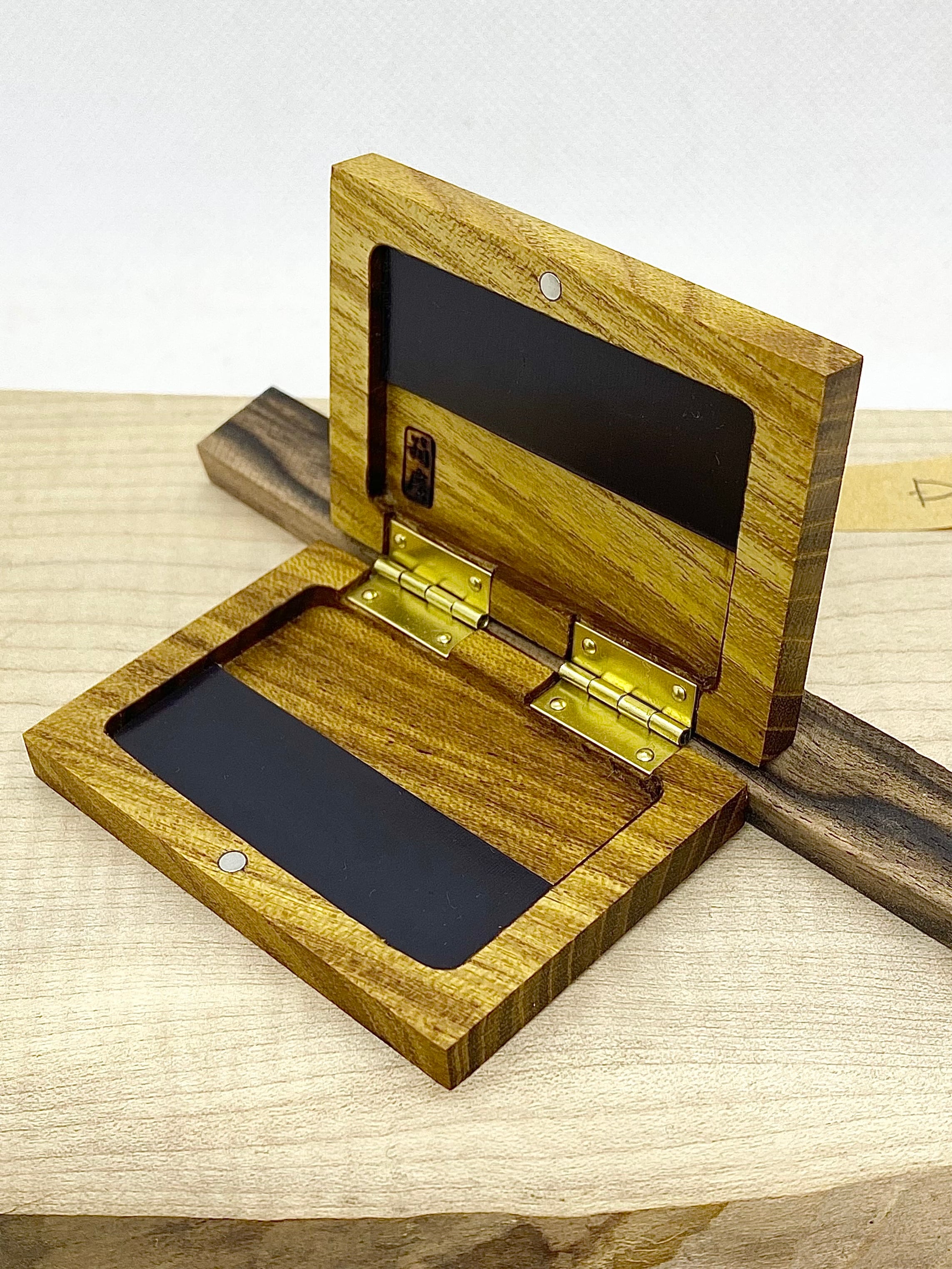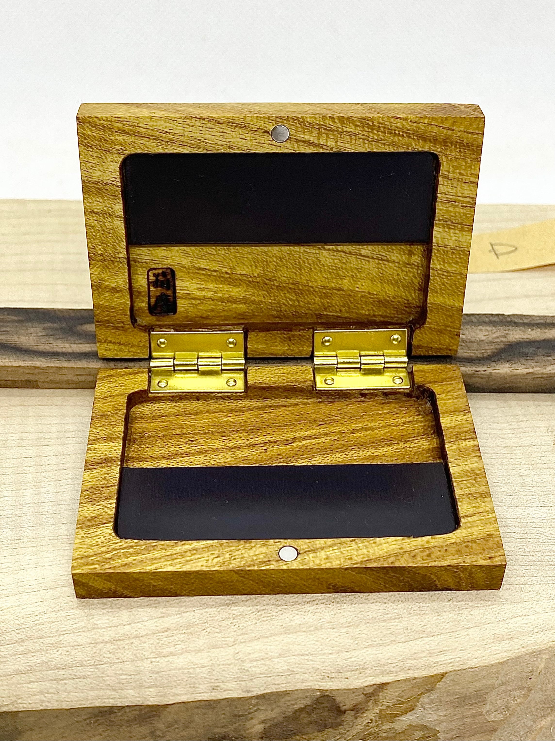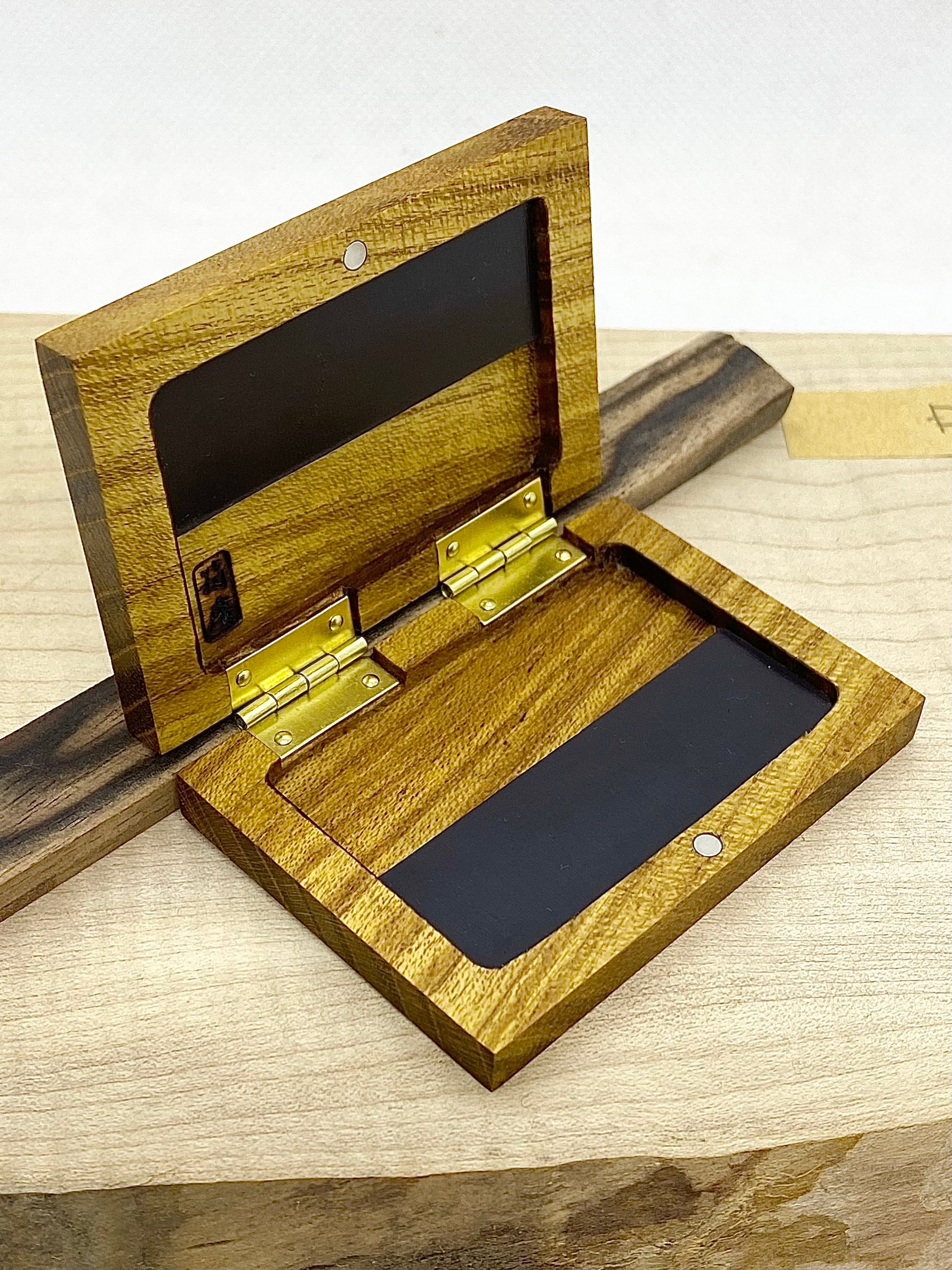 色味が綺麗な御蔵島の桑を贅沢にブックマッチで切り出し、削り込みにて製作した針ケースです。