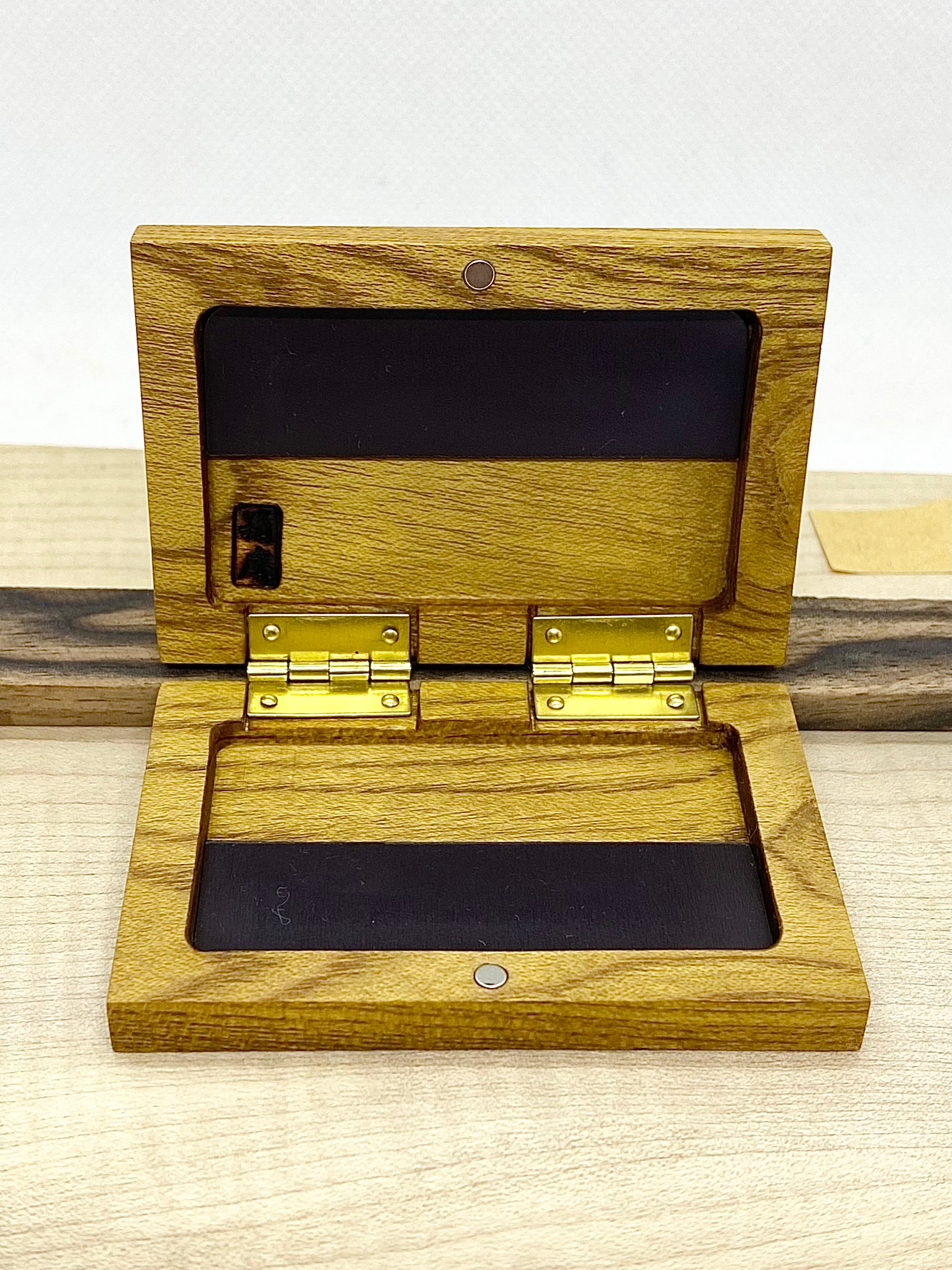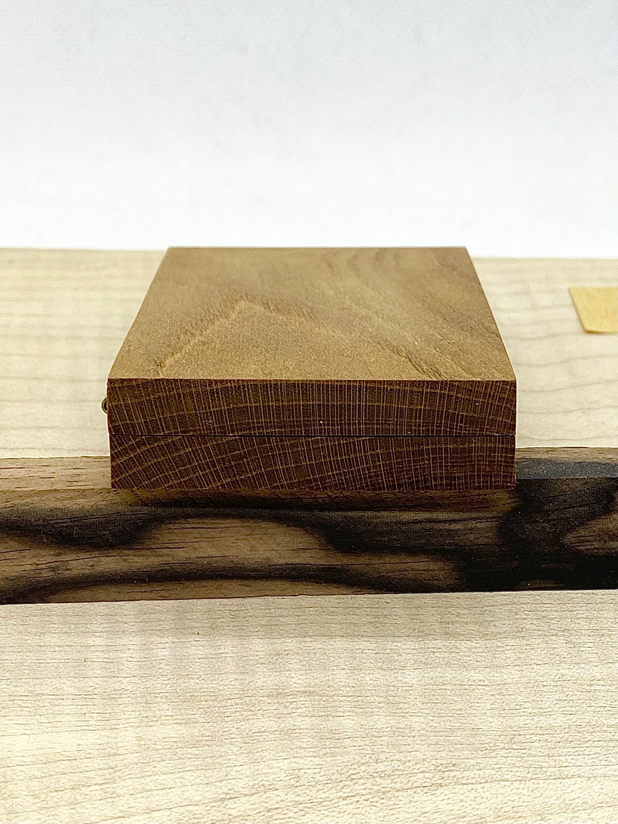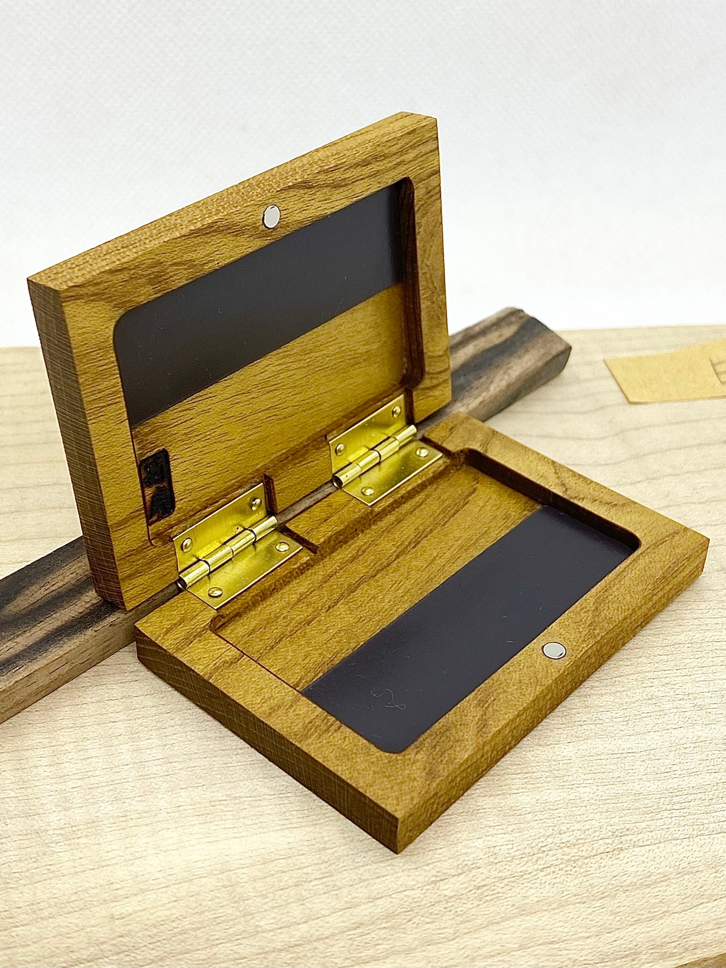 色味が綺麗な御蔵島の桑を贅沢にブックマッチで切り出し、削り込みにて製作した針ケースです。