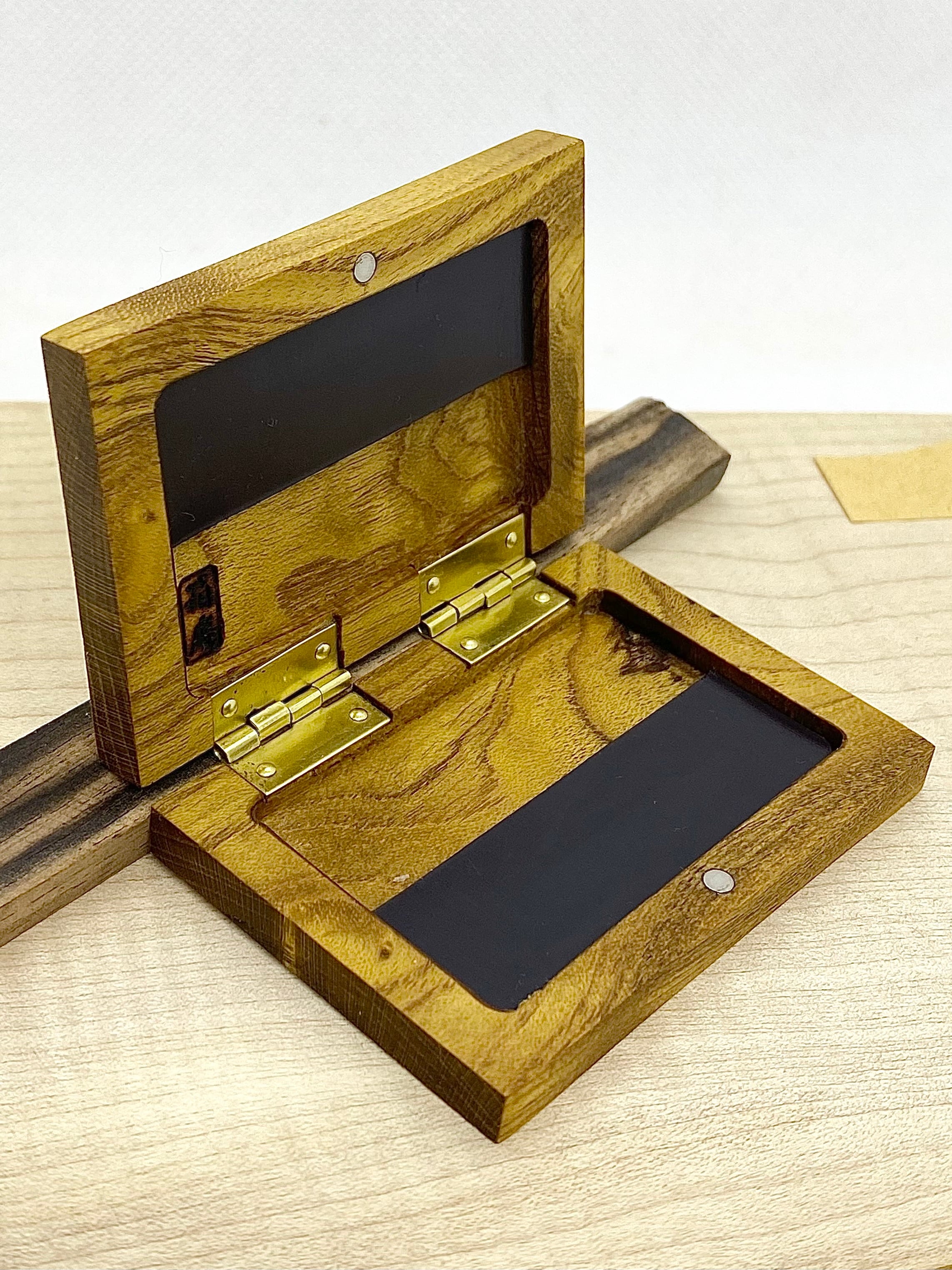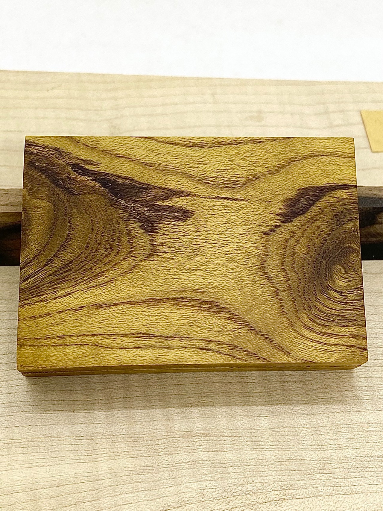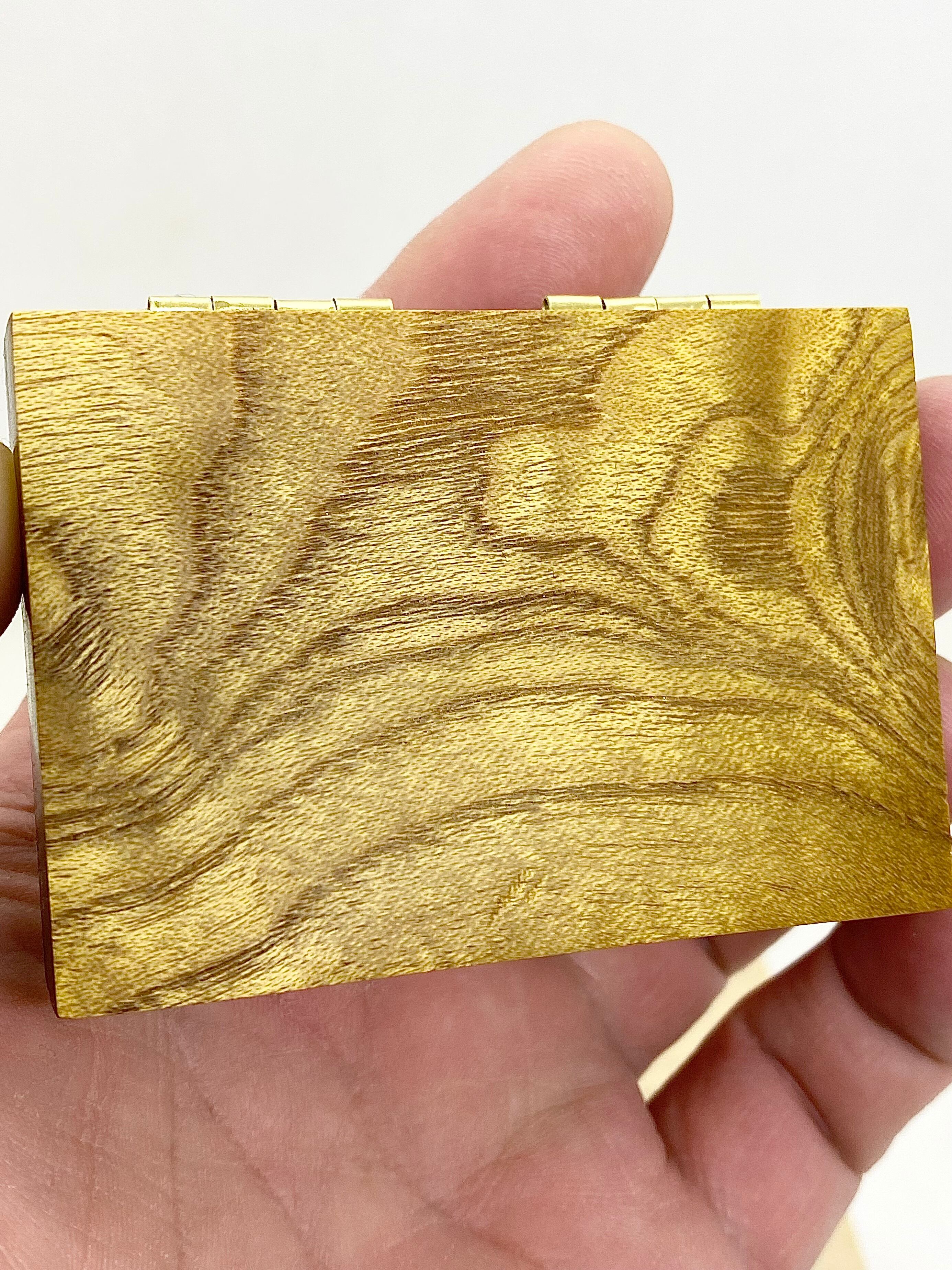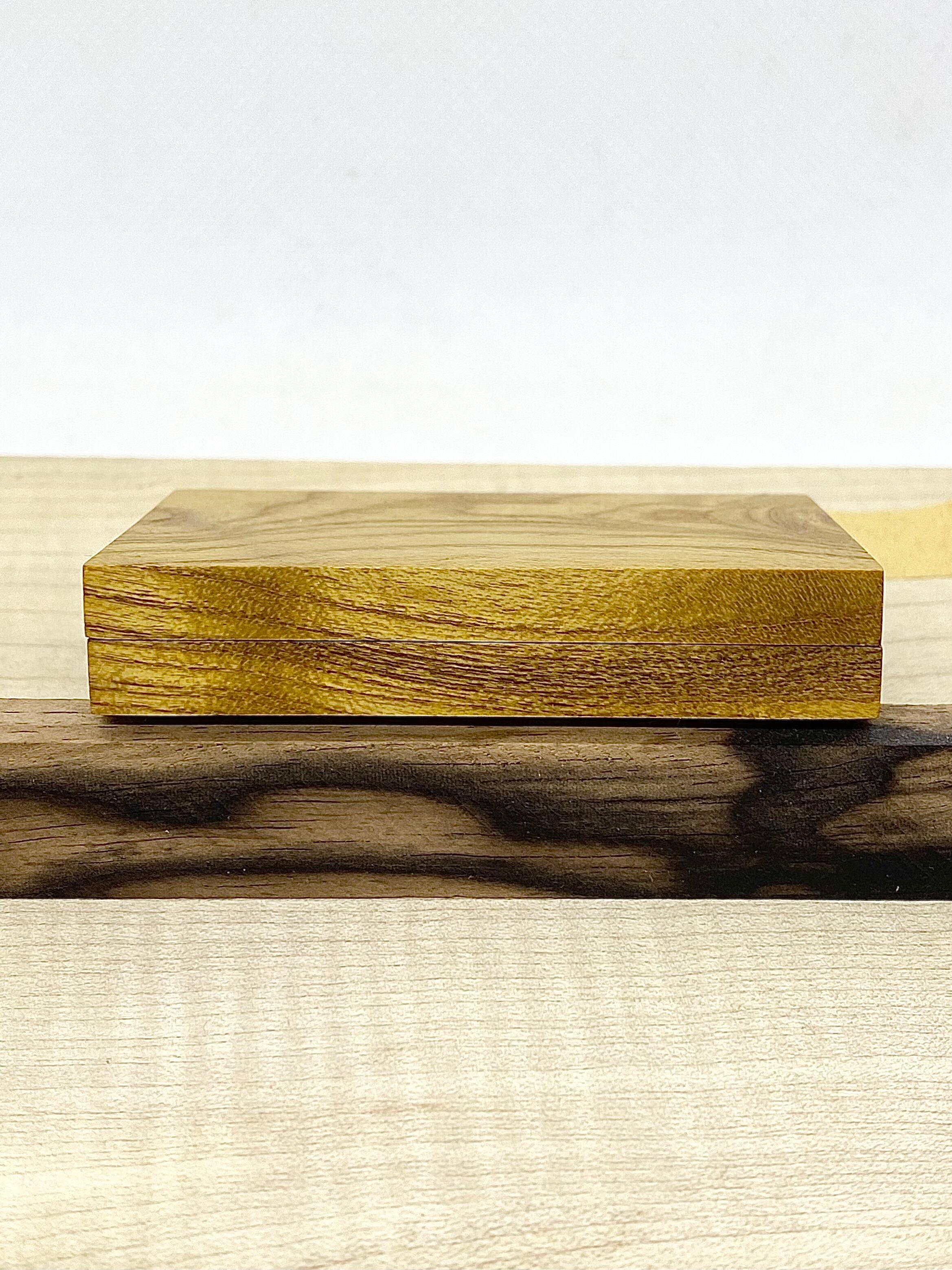 色味が綺麗な御蔵島の桑を贅沢にブックマッチで切り出し、削り込みにて製作した針ケースです。