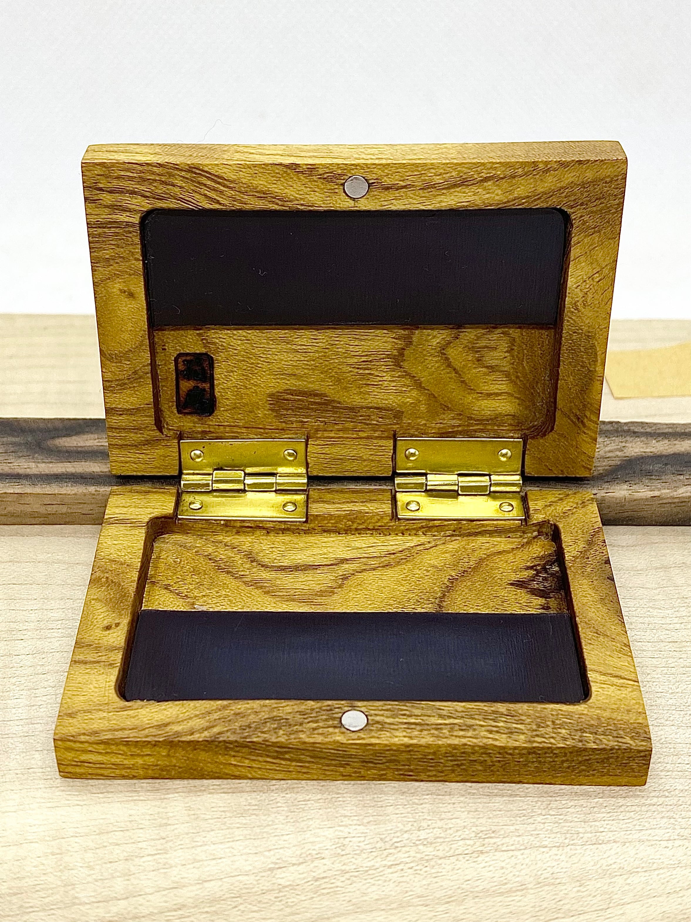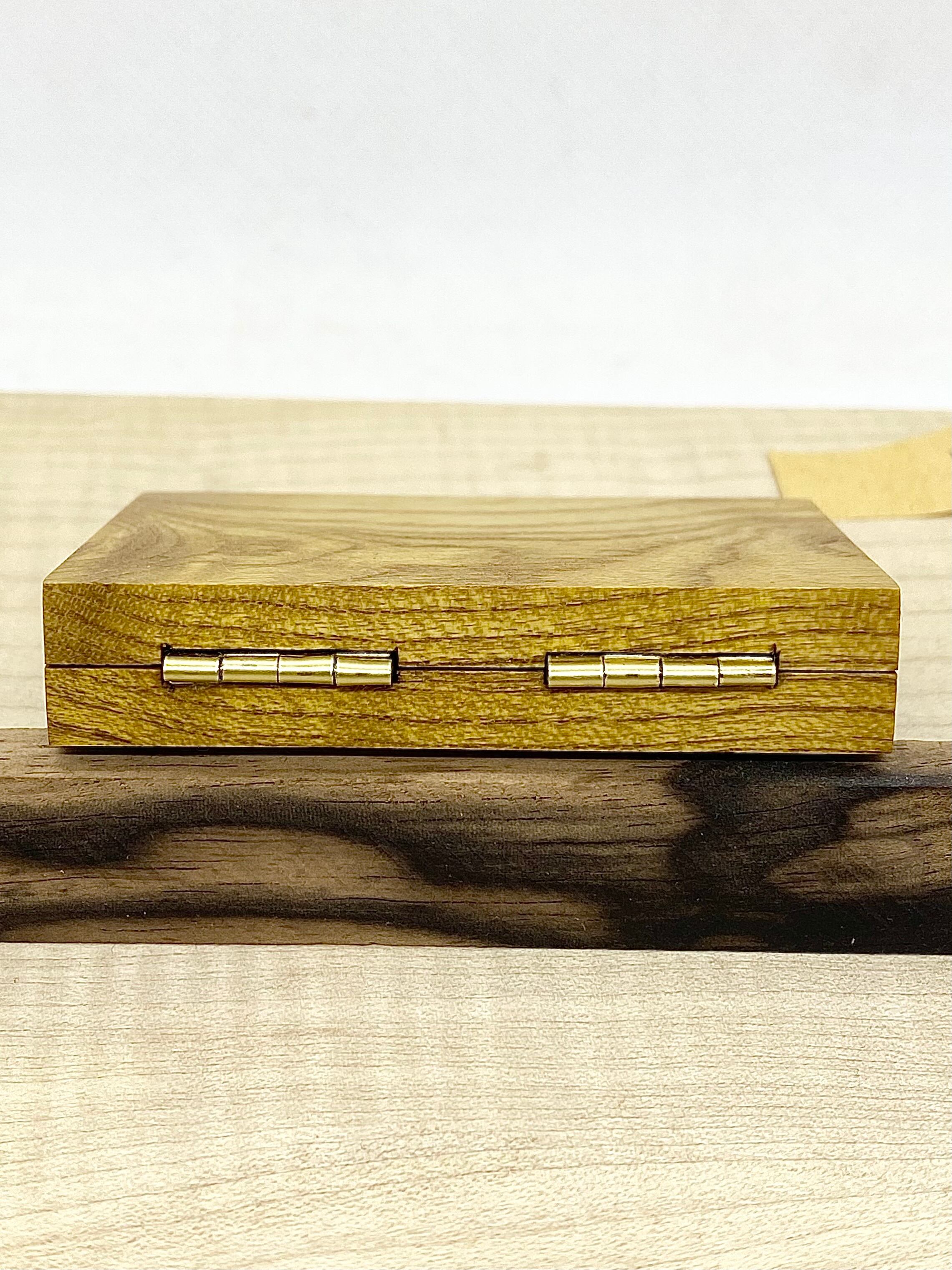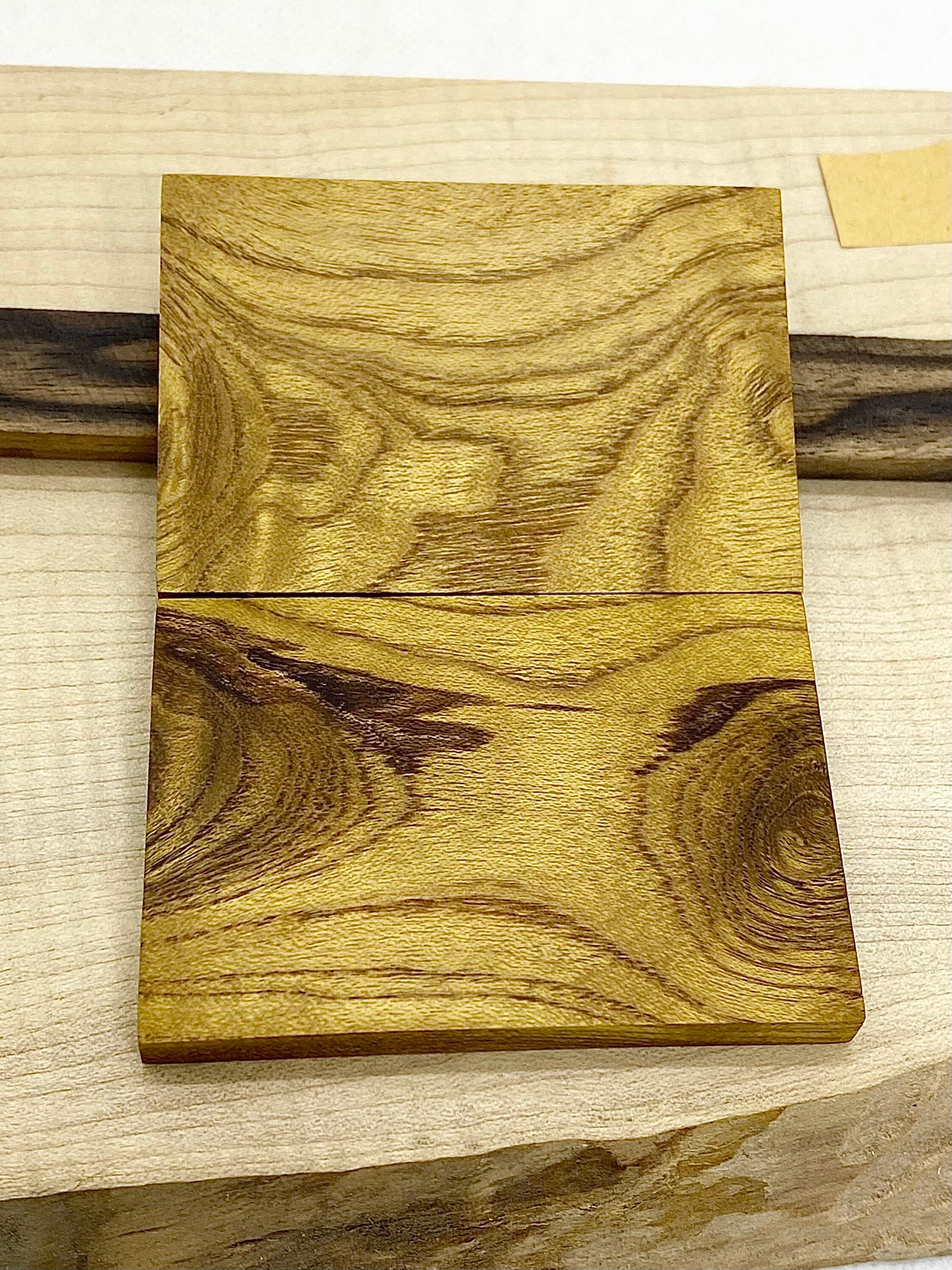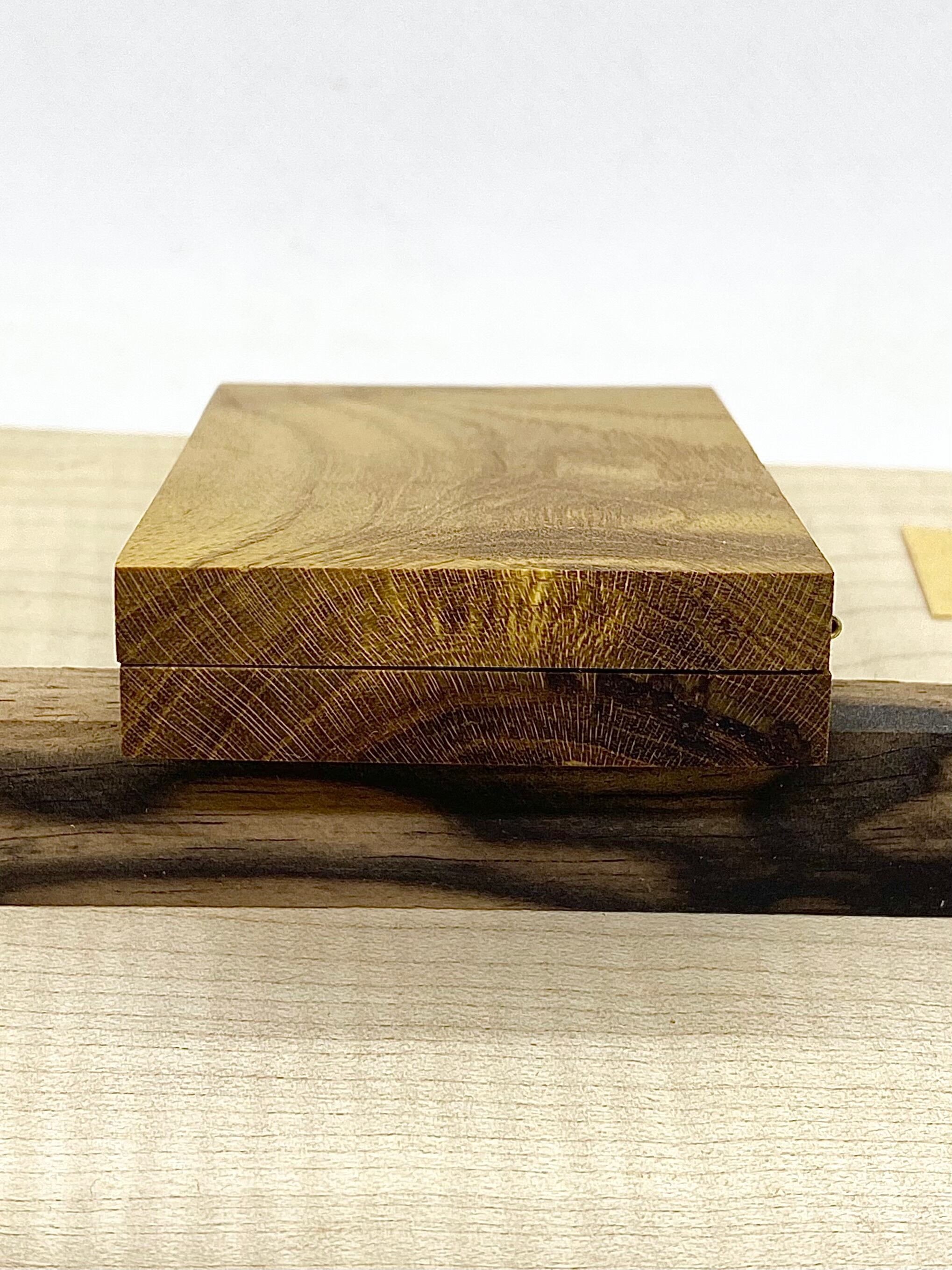 色味が綺麗な御蔵島の桑を贅沢にブックマッチで切り出し、削り込みにて製作した針ケースです。