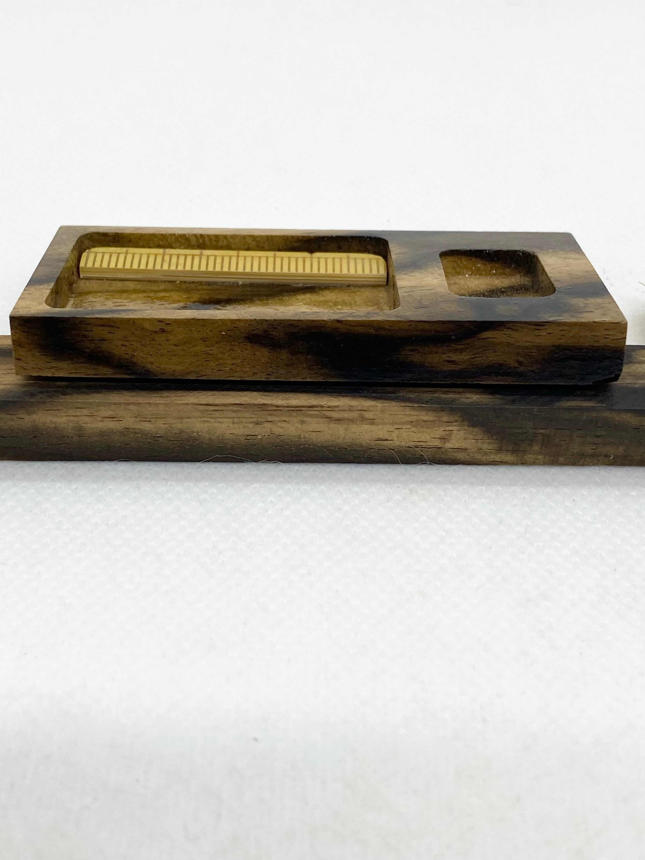 樹齢数百年とも言われる柿の木に白と黒の美しい模様を持った希少な高級木材、黒柿を贅沢に使用した削り込みのスケール&グルテン置きです。