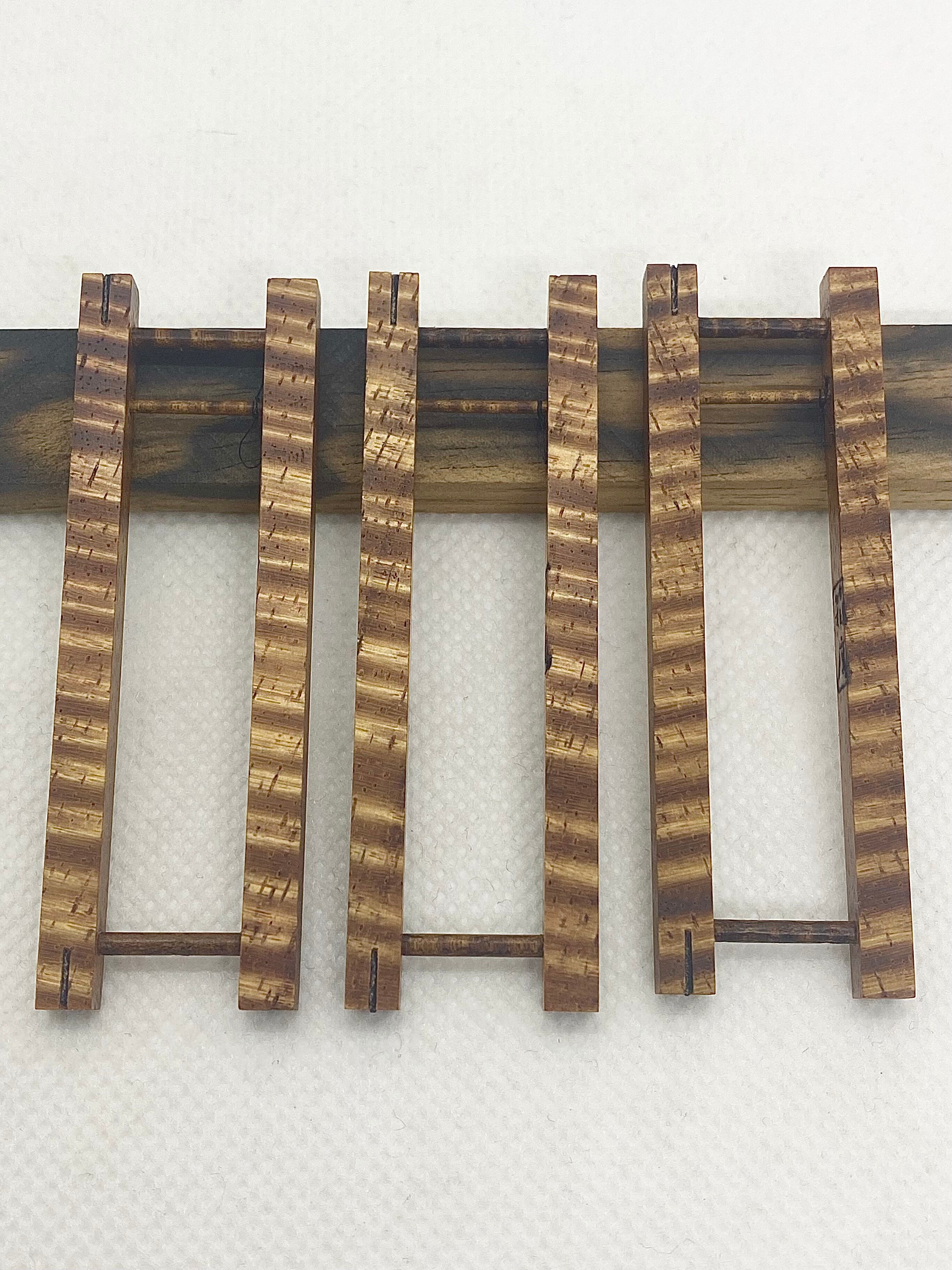 梯子も上下は勿論、針を掛ける細い丸棒まで同じハワイアンコアを使用しています。縮み杢がきっちりと入っています。
